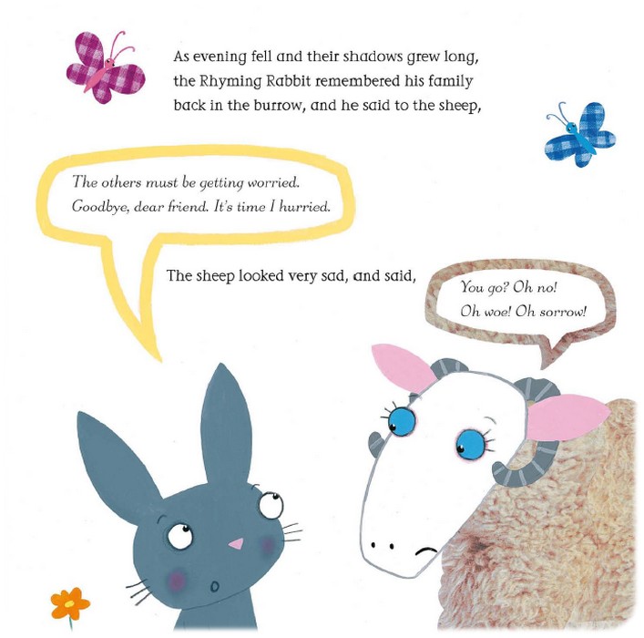 The Rhyming Rabbit might have a way with words, always so inspired that he can’t help blurt out a sonnet or limerick, but the other rabbits are certainly not seeing it that way. Especially when he always seems to be at his most creative at the most inconvenient times! Feeling rather unappreciated and alone, the Rhyming Rabbit decides to leave and find more understanding friends. On the way he meets many woodland creatures but none seem interested in his talent … until his quest for a friend brings him to a field where he comes across an unlikely companion who might just share his rhyming habit!