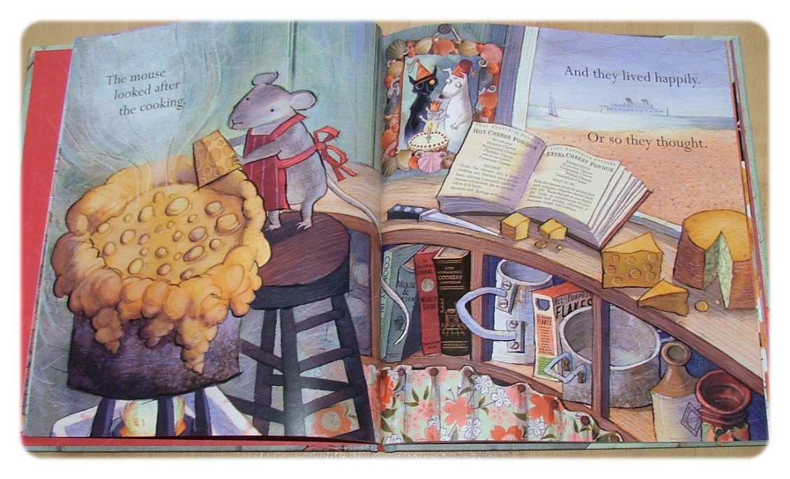 The publication of a new Mini Grey book is always cause for celebration in our house. My son particularly is a fan of Traction Man and Jim (see my review here), but I love all of her work. Mini Grey’s style is so distinctive; it is vibrant, quirky and modern and yet it is timeless in the way that she can touch on any era (The Adventures of the Dish and the Spoon with the Prohibition, and Jim with the early twentieth-century) and make it her own This new story is particularly intriguing; the fox (always a shifty character in books) comes from nowhere, and we are not sure what his motives are. He seems set on driving the friends apart, and yet each time seems to also find a way to draw them closer. This can be quite confusing at first, especially for a younger audience. It seems impossible to begin with to decipher whether he is in fact a goody or a baddy. But I think that actually it doesn’t matter; it is not really important where he comes from, why he is here and why he suddenly disappears as if his work there is done. The lessons learnt from the three friends is what will surely stand out the most for the young readers: that strength of friendship is found in making concessions and not only recognising your own weaknesses but also your strengths in yourself and your friends. The fox is only a secondary character, setting the scene for Dog, Mouse and Cat to realise what they mean to each other, and to accept that it is never good to take people for granted. Their eccentricity and antics in the house only make them more loveable.