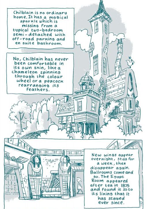 Glister’s village is taking part in the annual Village-in-Bloom contest, led by the very pompous Mr Leonard Swarkstone, Lord Lieutenant of Whixleyshire and head of the Gravehunger Moss Bonny Village task force. He is determined to win and is willing to iron out any creases which might appear in the perfect picture he is creating of the village. After Glister takes him on a grand tour of the property, it becomes obvious that Swarkstone does not like what he is seeing! Chilblain Hall is no ordinary home of course; it has a soul and a mind of its own and many unusual and magical things happen there. Things that don’t fit with Swarkstone’s ideal English village. So when he announces that he will make sure that the judges do not see it, the house finds itself insulted and after getting into a huff disappears altogether, taking everything with it, including resident ghost Philippa Veil. Glister and her father have to find themselves a new home and after initially enjoying the all mod cons of their new residence (a state of the art tree house, grown from the ground thanks to a magic bean!), she soon finds herself missing her old house and pining for all its imperfections. Glister therefore decides that she will do anything to bring Chilblain Hall to its rightful place, not only geographically, but also as part of the village. But with the house that has a mind of its own, it will be no mean task!